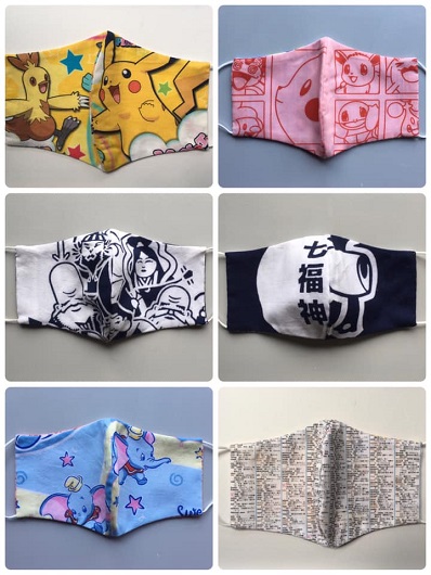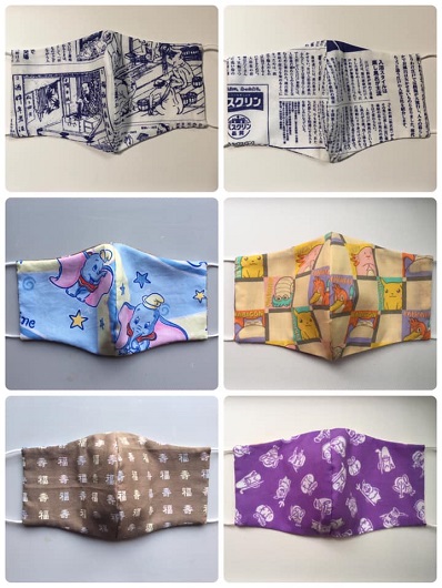 最下段左は「福」と「寿」の文字が並んだマスク。
