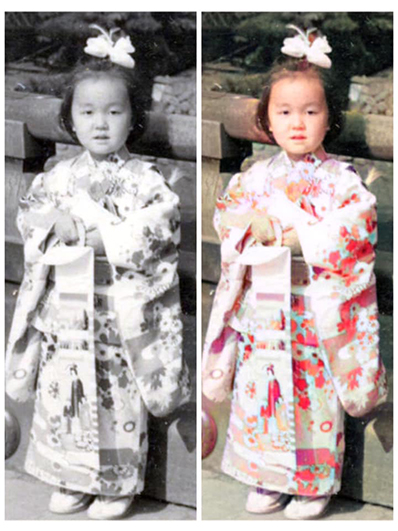 ところで話はコロッと変わりますが、私が3歳の時に撮った七五三の写真を、昨日息子がささっとカラー化してくれました。