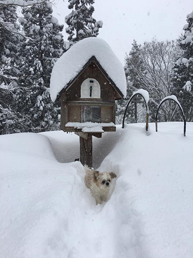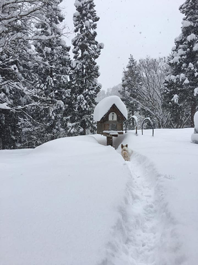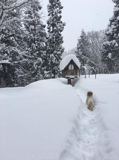 クースケ氏(4歳半)は運動不足解消のため(?)自主的にスノトレ実施中!