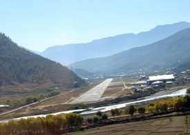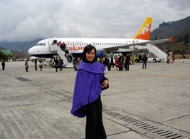 ブータン唯一の空港「パロ空港」にて。四方を山で囲まれて離着陸が難しく、パイロット泣かせの空港とか |