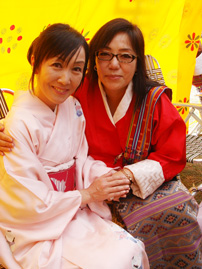 (左)皇太后がお住まいの宮殿の庭にて、民選初の首相に選ばれたジグメ・ティンレー閣下と