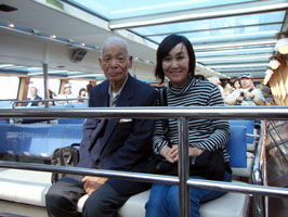 (左)カウラからの生還者・元陸軍兵士の村上輝夫さんと東京湾クルーズ (右)小野田寛郎さんと会見