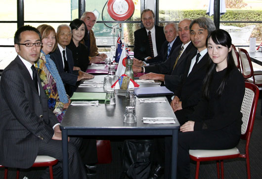 墓参を終えた私達は、カウラ市役所を表敬訪問の後、ビル・ウェスト市長らと一緒に日本庭園へと向かいました。 |