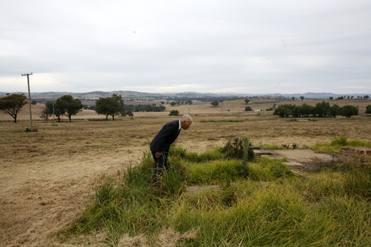 捕虜収容所があった場所を見つめる91歳の村上さん。事件当時は弱冠23歳でした