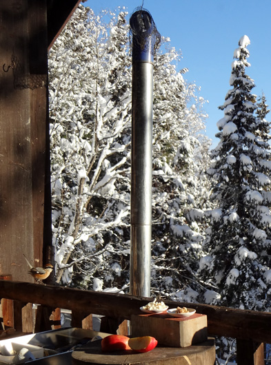 バルコニーにやって来る小鳥(写真左下)のための餌場も作りました