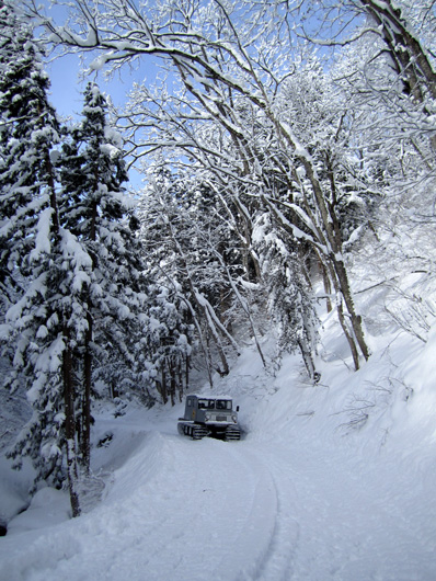 冬季はこの雪上車で山小屋と下の村を往復しています |