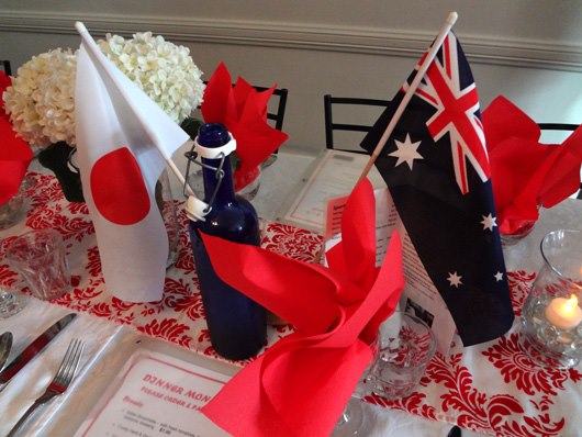 テーブルの上にさりげなく置かれた日豪両国の国旗がステキです♪ |