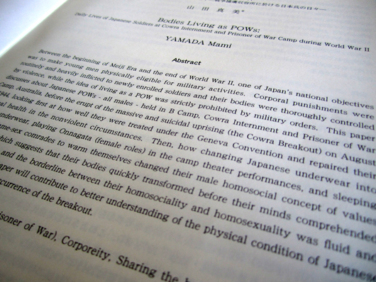アブストラクトは英語ですが本文は日本語です。キーワードは「カウラ、戦争捕虜、身体、男子同衾、ホモソーシャル」。