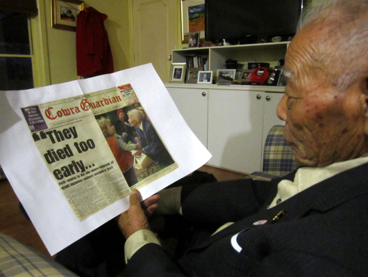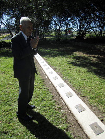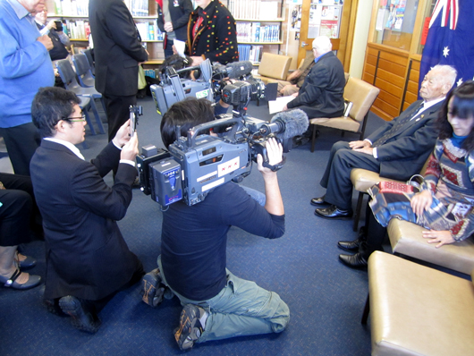 11時30分: シドニーから新聞社のカメラマン(ピーター・ラエ氏)が到着、上記の新聞記事に掲載するための村上さんの写真を撮影。「日本人墓地」と「梅の大木の前」の2か所での撮影となりましたが、結局は日本人墓地での写真が採用されました。