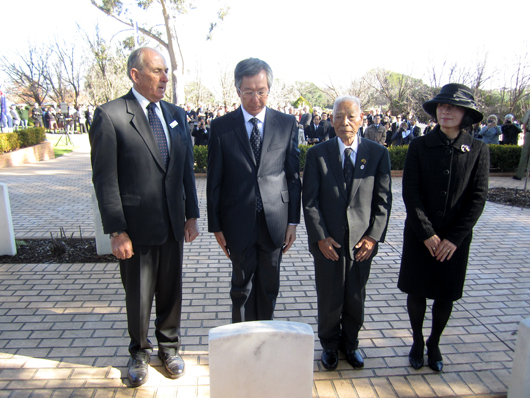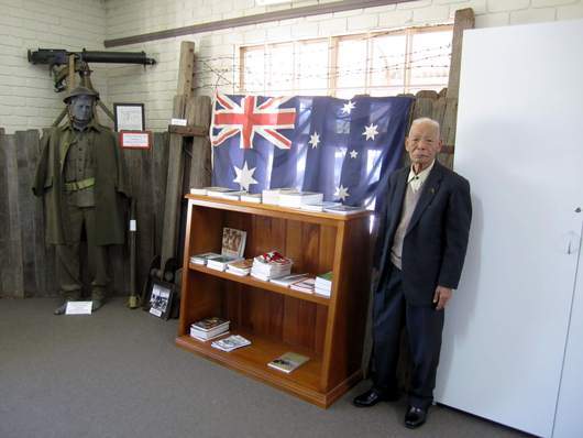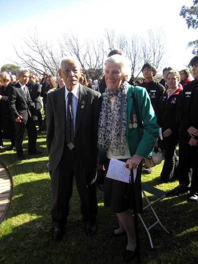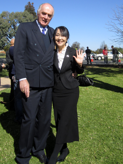 辱めを受けず』原作者のハリー・ゴードン氏、私。このあと私はカウラ事件研究者のグラハム