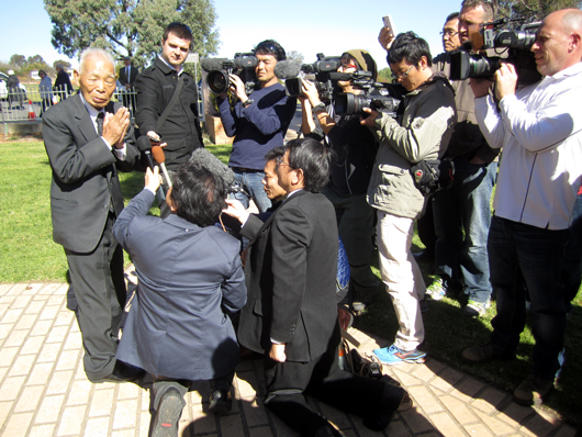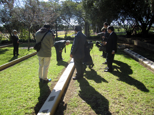 シドニーの新聞社からわざわざ駆けつけてくださったカメラマンによる写真撮影(日本人墓地にて)