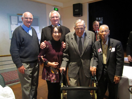 講演後のワンシーン。村上さんを囲んだ3人は1944年8月5日の事件