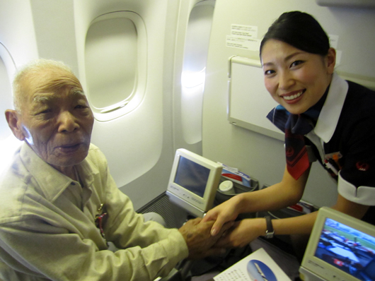 ストラリア未体験者」である私の母(成田空港の出発ロビーにて) |