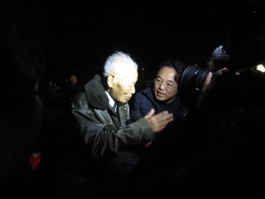 村上さんの姿をカメラに収めるNHKの取材班など