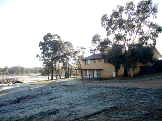 裏手から見た風景。朝晩はうっすらと霜が下りていました(ちょうどカウラ事件が発生した晩が