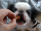 よう警戒しながらお犬様ビスケットを食べてます)