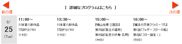 8月25日の上映会には10数人の観客が訪れていましたが、その内訳は、母と娘らしき組み合わせ×3組、祖母と孫娘らしき組み合わせ×1組、いかにもオタク風の男性×2人、コスプレ女性×1人、その他(=私)×1人でした。