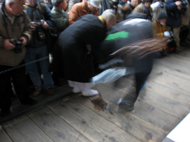 さて、2月中旬の奈良の山中はさすがに冷え込みが激しく、ダウンのロングジャケットを着て臨んでも次第に手足の感覚がなくなってくるほどでしたが、建物の中と言わず外と言わず境内は人、人、人でいっぱい。