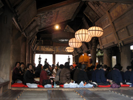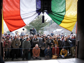 本堂にぎっしり並んだ座布団に座っていると、前後左右の人たちとおしくらまんじゅうをしているようで、その温もりゆえに寒さをしのげたのは幸いなことでした。 |