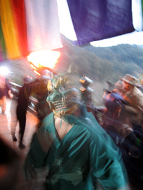 日がとっぷりと暮れてからも、3匹の鬼と松明と消火班の鬼ごっこは延々と続きました…… |
