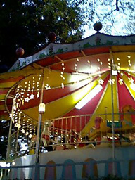 クリスマスのイルミネーションがともり、ひと気の少なくなった夕暮れの公園を枯葉を踏みしめながら歩いていると、どこか知らない街を歩いているような気持ちにさせられたほど。一瞬、(ここはパリ?)という錯覚さえ覚えた私でした。 |
