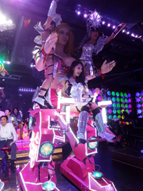 なお、ここでロボットの性能などに期待してはいけません。そこに期待して行くと、たぶん脳の血管がブチ切れます(笑)。ポイントは、そこじゃじゃないんです。名前はロボットレストランですけど……テーマはむしろ踊るビキニのお姉さんなんです。なにしろ歌舞伎町ですから。はい。
