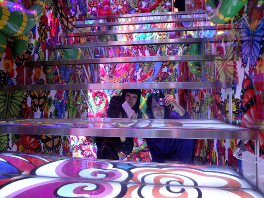 [(左)階段]鏡を張り巡らした恐ろしくサイケデリックな階段で地下へ。何が何だか……