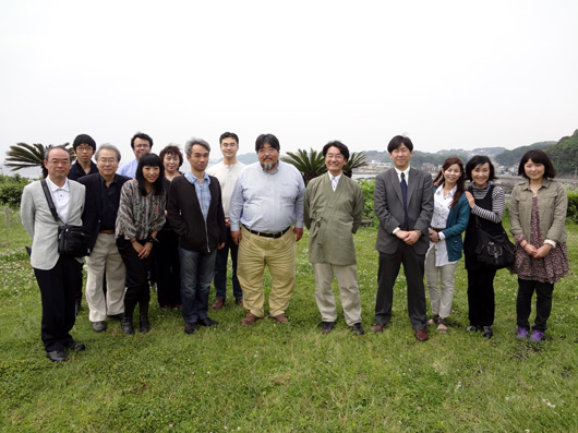 佃一可さん(真ん中の作務衣をお召しの男性)を囲んで記念撮影。本当はこの倍ぐらいの人数が