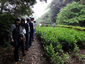 観音崎の茶畑にて。一可さんのお顔で、我々の分だけ摘み残しておいていただいたんですって(感謝)