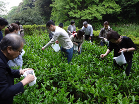 食の最大が7時34分(※東京の場合)という微妙な時間帯でしたので、今回はなんと茶摘みのイベント(早朝5時30分〜)から1日がスタート! |