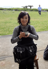 [右]これは日食観測が終わったあとの一コマ。海を背にしてお抹茶をいただいてます。極楽…… |