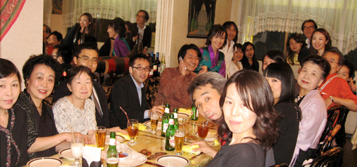 なにやら笑顔で電話中なのが佃さん、その向かって右隣のチベット民族衣装姿が私 |