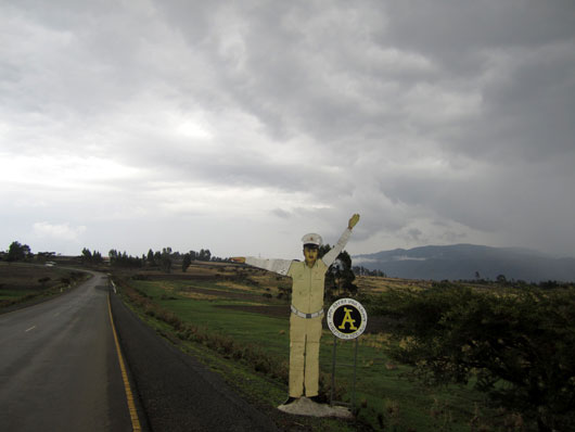 こうして知らない街をドライブするのは楽しい。なにしろ何もかもが珍しいから。途中で見かけたベニヤ板でできた等身大おまわりさんに私は大受けしたのだが、同行してくれたエチオピア人たちは誰もそのおかしさを理解できないようだった。