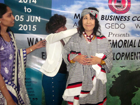 レクチャー終了後、学長以下一同より民族衣装を贈られた。