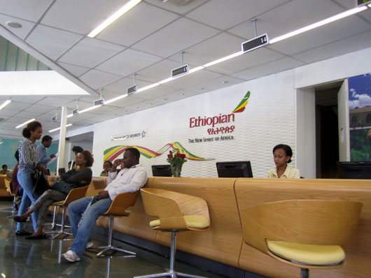 移動にはこの4月に就航したばかりのエチオピア航空(成田~アジスアベバ間)を利用。片道15時間強の長旅ながら、サービスがよく、思いがけず快適な旅であった。 |