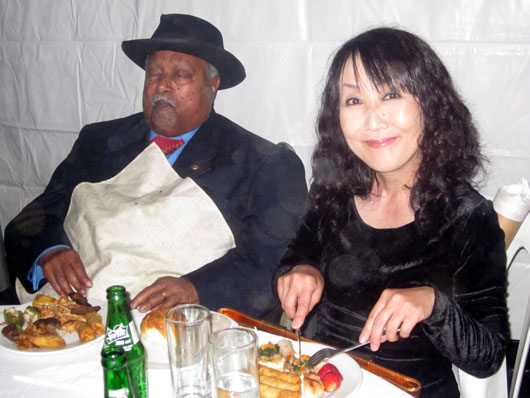 記者会見を終えて食事中のギルマ元大統領と私。 |