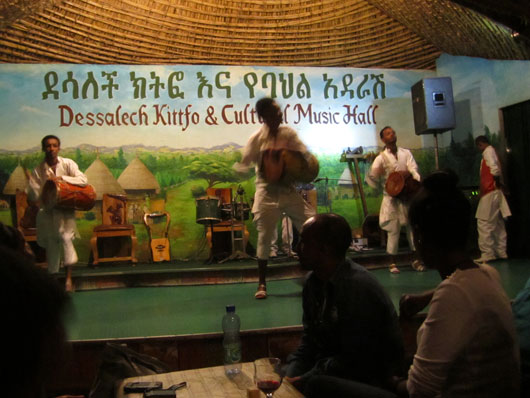 アジスアベバ最大の市場であるマルカートにも立ち寄ったあと、夜はアベラ学長らと合流。伝統的なダンスを見ながら食事が楽しめるというレストランに連れて行ってもらった。