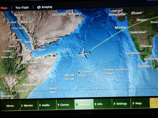 インドの上を飛び越して、一路エチオピアの首都アジスアベバへGO!