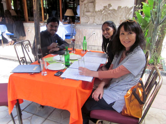 シバクマール氏+アキーラさんと「ルーシー」でランチ中。