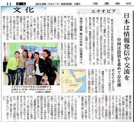 | 追記: なお6月30日の信濃毎日新聞(第11面 文化欄)に私のエチオピア行きの記事が載りましたのでお知らせいたします。 |