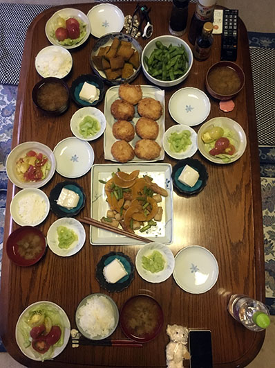 私の実家にて、母、私、娘、孫娘の4代揃って夕食。