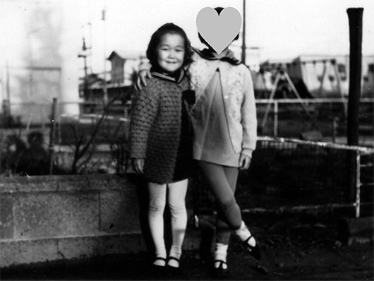 50数年前のK子ちゃんと私(左)。当時住んでいた団地のお庭で。 |