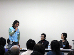 でレクチャーする、左から日比野克彦さん、黒川