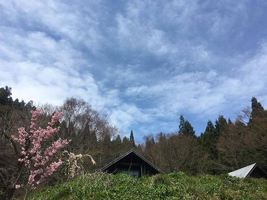 左に見える2本の木は、昨春、孫娘の誕生を記念して植樹した桜。