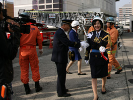 次いで行なわれたのは、消防車輛特別点検の視察です。