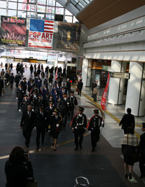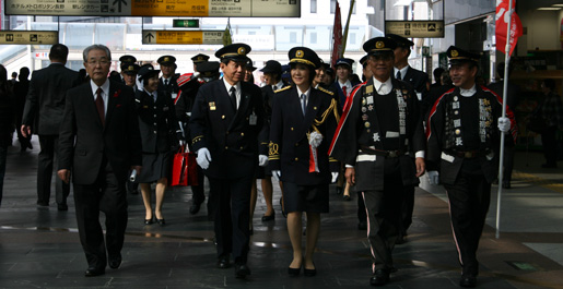 | 最後は「火の用心」と染め抜かれた桃太郎旗を手に、長野駅周辺を行進しました。 |