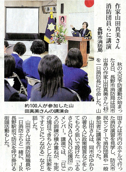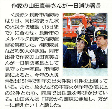 秋の火災予防運動初日の11月9日、故郷の長野市において一日消防長を務めさせていただきました。