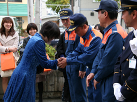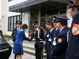 消防署に到着、拍手で温かく迎えられました。皆さん外で待っていてくださったんですね。