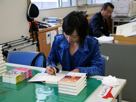 拙著20冊にサインを入れて消防署の皆さんに献本。多くのかたに読んでいただけると嬉しいな♪