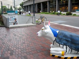 「MagiCow」と名づけられたスティーブの牛は、現在は大手町のサンケイビル正面に鎮座ましましています♪